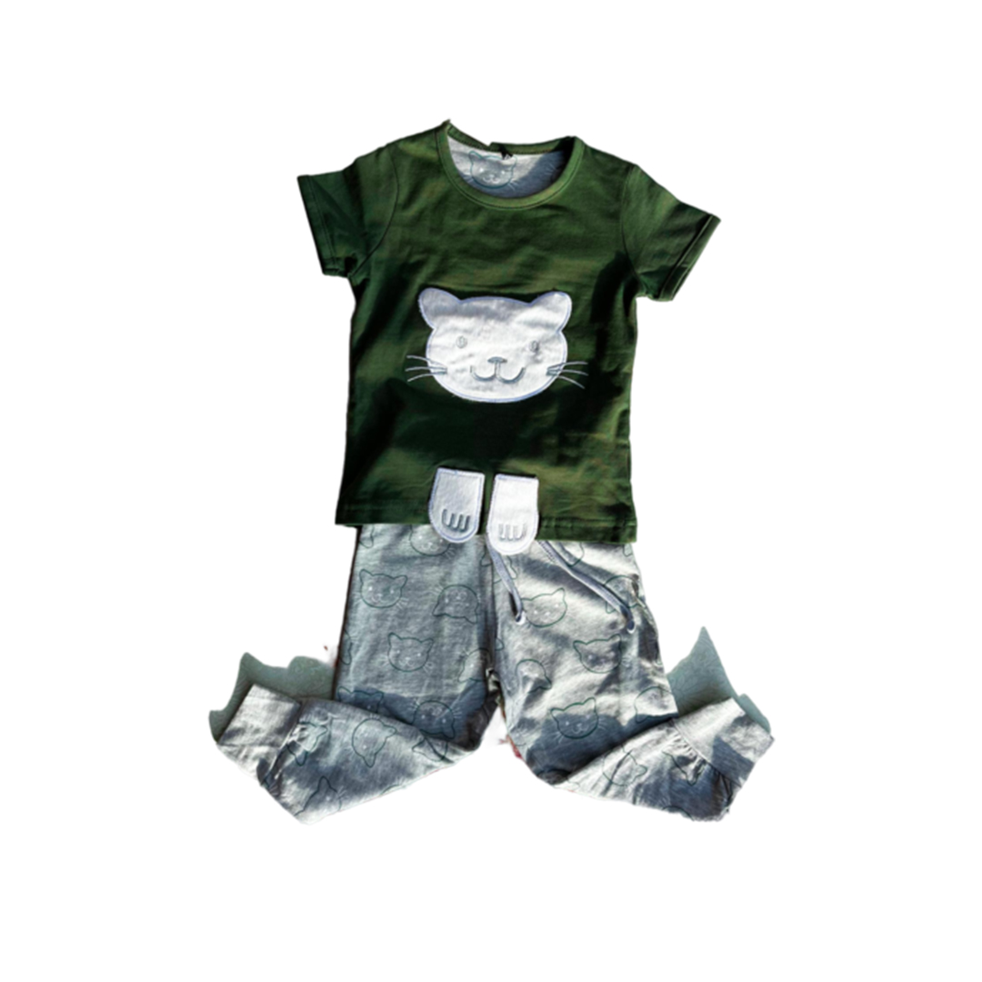 ست تیشرت و شلوار دخترانه مدل گربه