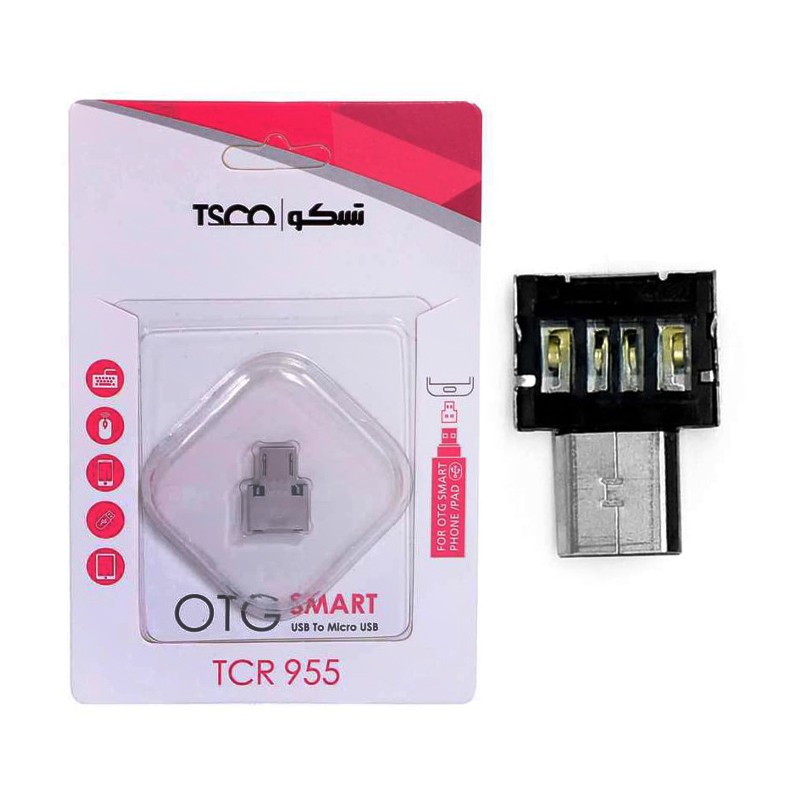 تبدیل OTG تسکو مدل TCR 955 رابطی است برای اتصال فلش مموری به گوشی و تبلت هایی که دارای پورت Micro USB است . به وسیله این دستگاه که در ابعاد بند انگشتی طراحی و تولید شده است ، می توانید اطلاعات مورد نیاز خود را از فلش مموری به گوشی خود منتقل کنید . نکته حائز اهمیت در این محصول ، ابعاد و وزن ناچیز آن است که سهولت در حمل و نقل را برای کاربر به ارمغان می آورد . سرعت انتقال اطلاعات در این محصول استاندارد USB 2.0 است . این تبدیل با وارد شدن در درگاه USB فلش باعث چسبیدن فلش به گوشی شده (مطابق عکس آلبوم) و از شکستن تبدیل جلوگیری می کند.