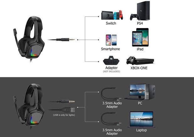 هدفون های مخصوص بازی معمولا ویژگی های خاص خود را دارند و با هدفون های معمولی که برای گوش دادن به موسیقی و استفاده روزانه طراحی شدهاند، تفاوت هایی دارند. به طور کلی محصولاتی که در حوزه گیمینگ تولید می شوند دارای ظاهر خاصی هستند و معمولا شرکت های تولید کننده سعی می کنند تا با استفاده از چراغ های RGB جلوه زیباتری به آن ها ببخشند. هدفون اونیکوما مدل K20 هم از این قاعده مستثنی نیست. روی هر دو کاپ این هدفون چراغ های RGB قرار گرفته است که نام برند Onikuma را در رنگ های مختلف نمایش می دهد.